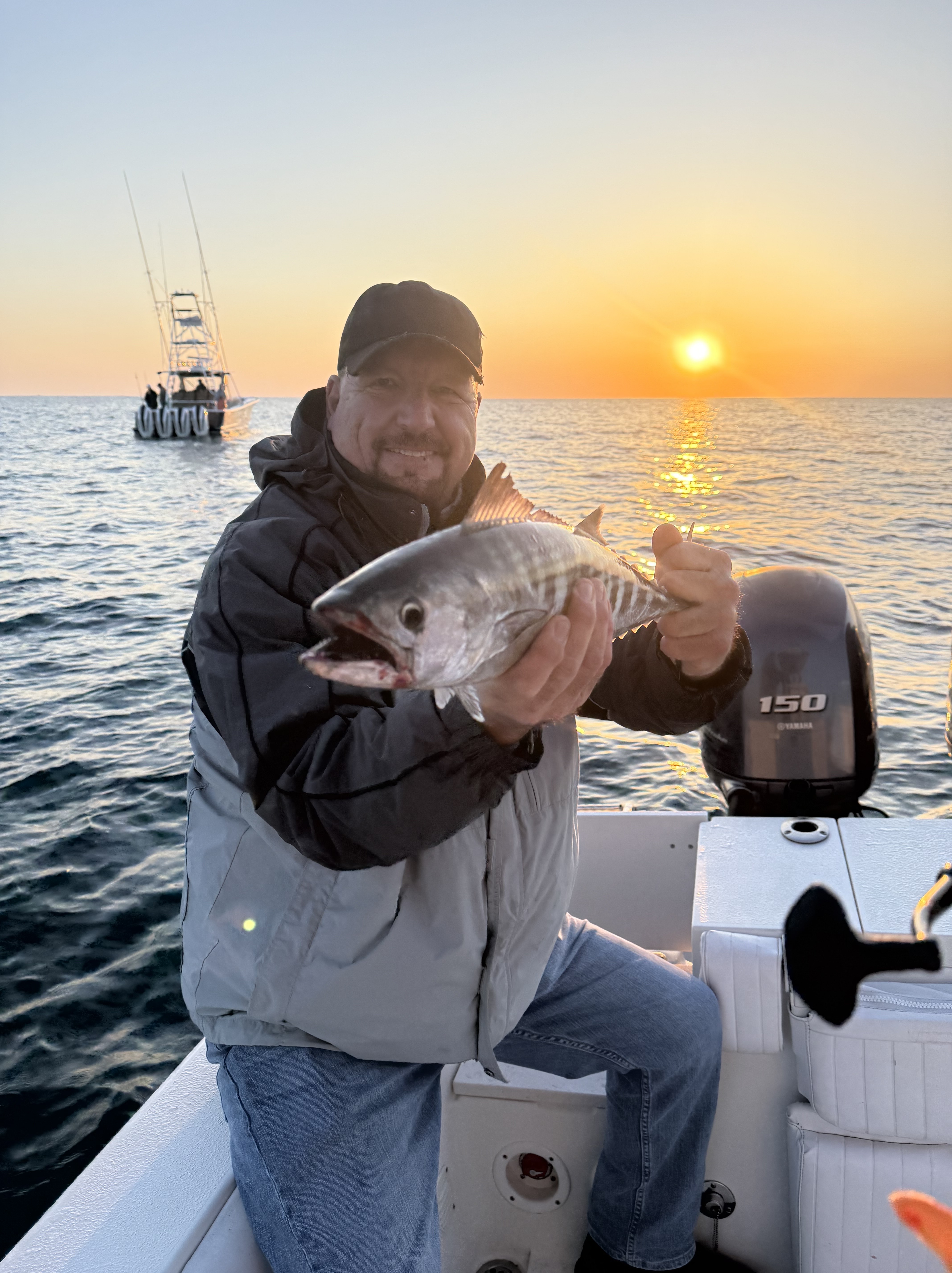 Trolling nearshore in the ocean out to five miles for Spanish Mackerel, King Mackerel, Bluefish, and Bonito (spring time). Bottom fishing for flounder, trout, seabass, and other bottom fish. If the weather is rough, we will fish inshore for redfish, flounder, trout, black drum, and more!